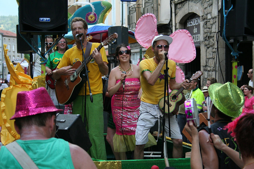 Troupe de percussions brésiliennes, défilés, scènes.